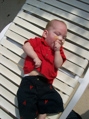 every time we went in i would bring up concerns about milo's stiffness...his constant discomfort...his constant crying and fussiness...dr. w would always attribute all of his problems to gastrointestinal issues, and lack of weight gain. we had one, then two, then three swallow studies to try and figure out why he was not eating....all came back normal. we saw a gi doctor who tried various reflux and stomach meds...it made no difference. every time we would go in for a weight check it was always the same thing..."i don't like this...he isn't gaining enough weight" but we were trying so hard, and he just wouldn't eat. so then he told us that there were only a couple of reasons that a child won't gain weight....either they just aren't getting fed enough or there is an underlying medical problem such as a heart defect which is causing them to need more calories...then he went on to say that he knew milo didn't have anything like a heart defect....aka, insinuating that he was not being fed enough by us....which just made me so angry because for the six months that milo was home from the nicu and did not have the feeding tube, my life WAS feeding milo....we would feed him all day long just trying to get him to eat enough...and we lived in a constant sate of worry and anxiety because he would not...so anyway, my point is that instead of trying to help us figure out the root of the problem and find some solutions, dr. w made us feel as though we were to blame.